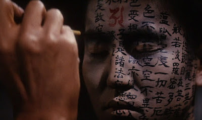 This segment has some beautiful scenes, great artwork, and epic battle sequences. It’s the most impressive of the film, though I still enjoy the simple emotionality of “The Woman of the Snow” more. The sets alone are worth the viewing, though. And I, for the first time, gained an appreciation for the Japanese lute – the biwa. Something I’ve always thought as atonal noise before. It also has some striking visuals in the final few minutes – particularly the image of Hoishi covered head to toe in calligraphy.