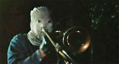 The final two murders/attacks are the most brutal, as if the killer was working to a frenzy. In the first, a young couple is waylaid on a wooded lane in the middle of town. The young woman, who plays trombone during a Junior/Senior dance earlier, is killed when the Phantom ties a hunting knife to the instrument and ‘plays’ it. I’m sort of glad I don’t play trombone any more.