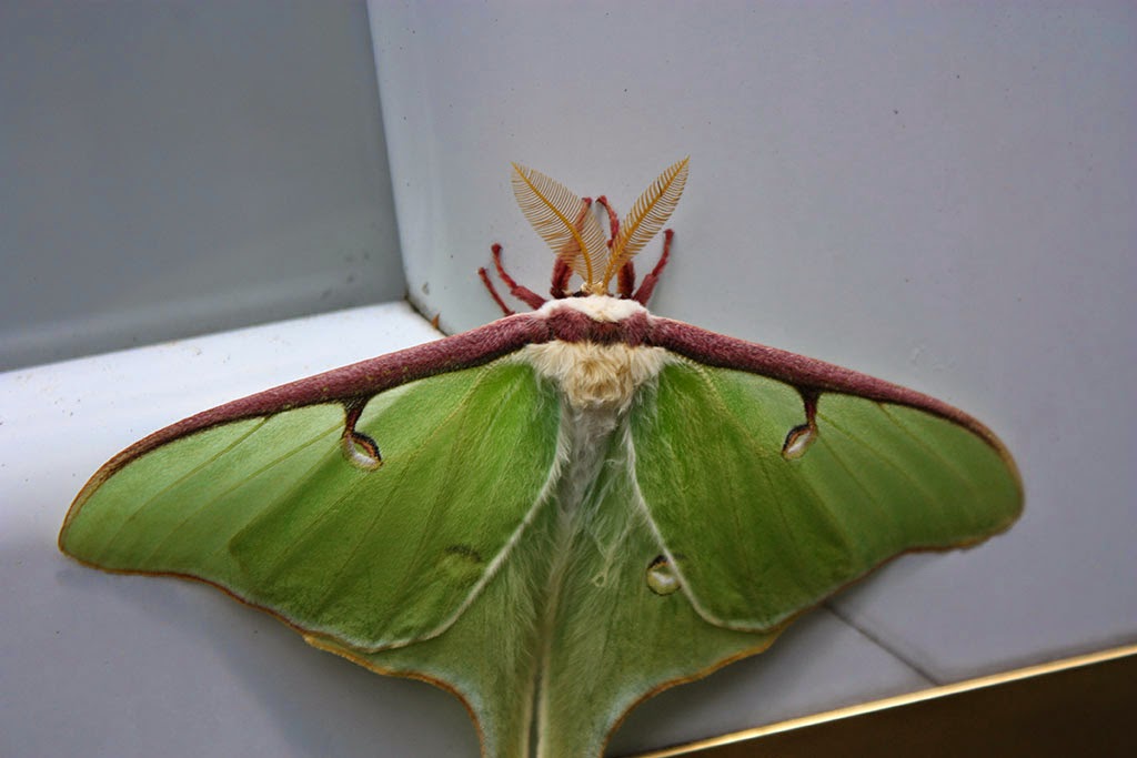 Had a cool looking visitor yesterday. Don’t think I’ve ever seen a Luna moth this close before. This one was about the size of my hand. Beautiful.